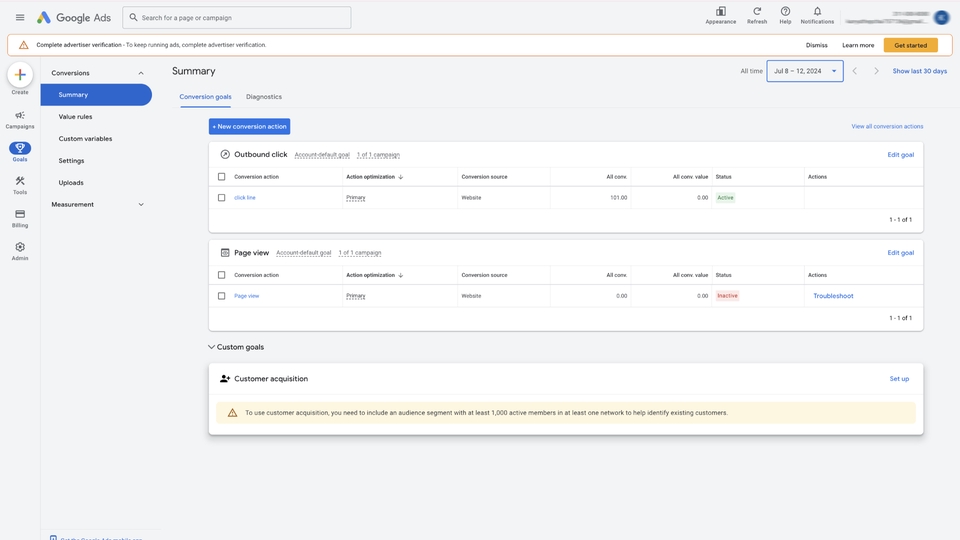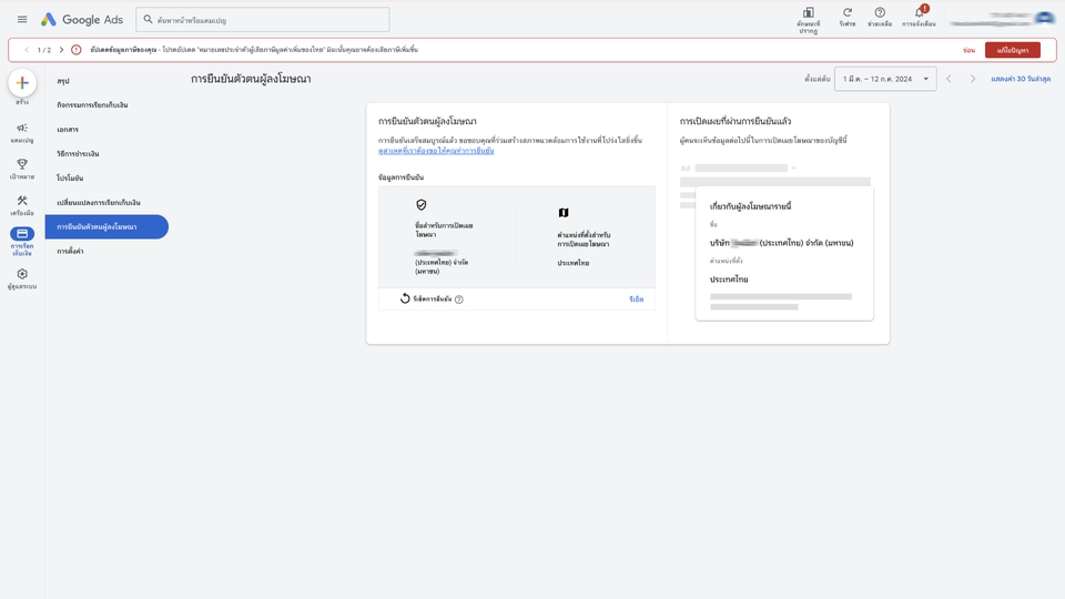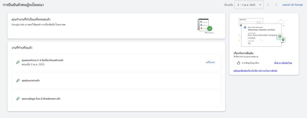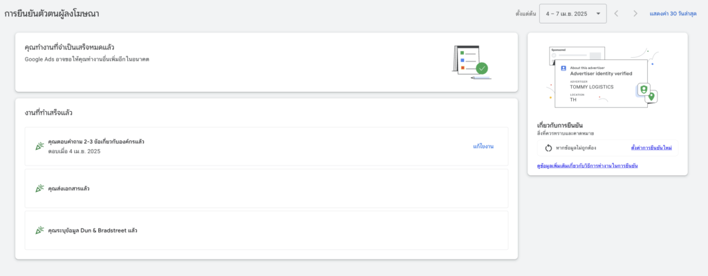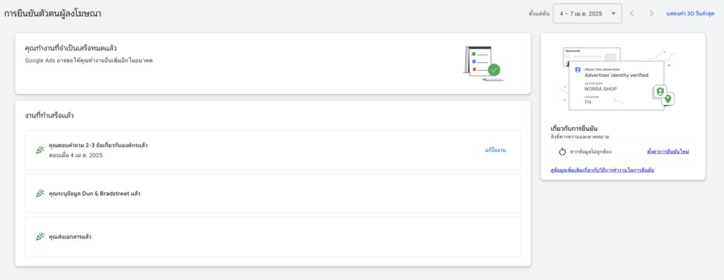 ตัวอย่างยืนยันบัญชี GOOGLE ADS
